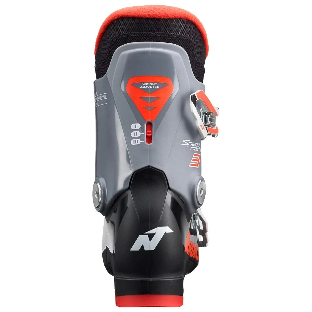Souhaitant faciliter le chaussage/déchaussage pour l’enfant, Nordica intègre dans ce modèle le système Dual Easy Entry, qui permet d’ouvrir le coup de pied de 50 % supplémentaire par rapport à une chaussure standard. Votre champion perdra donc moins de temps à enfiler la chaussure pour passer plus de temps sur les pistes. Son flex de 45 est parfaitement adapté aux gabarits des plus jeunes. Il assure du soutien dans les descentes et facilitera l’enclenchement des virages de votre skieur en herbe. La Speedmachine J3 offre également confort et chaleur grâce à son chausson Comfort Fit, pour que votre enfant ait les pieds au sec du matin jusqu’au soir. Enfin, la chaussure dispose du système Weight Adjuster, qui permet de régler le flex selon le poids du skieur de 25 à 45 kg. Pratique car à cet âge, ils grandissent vite.