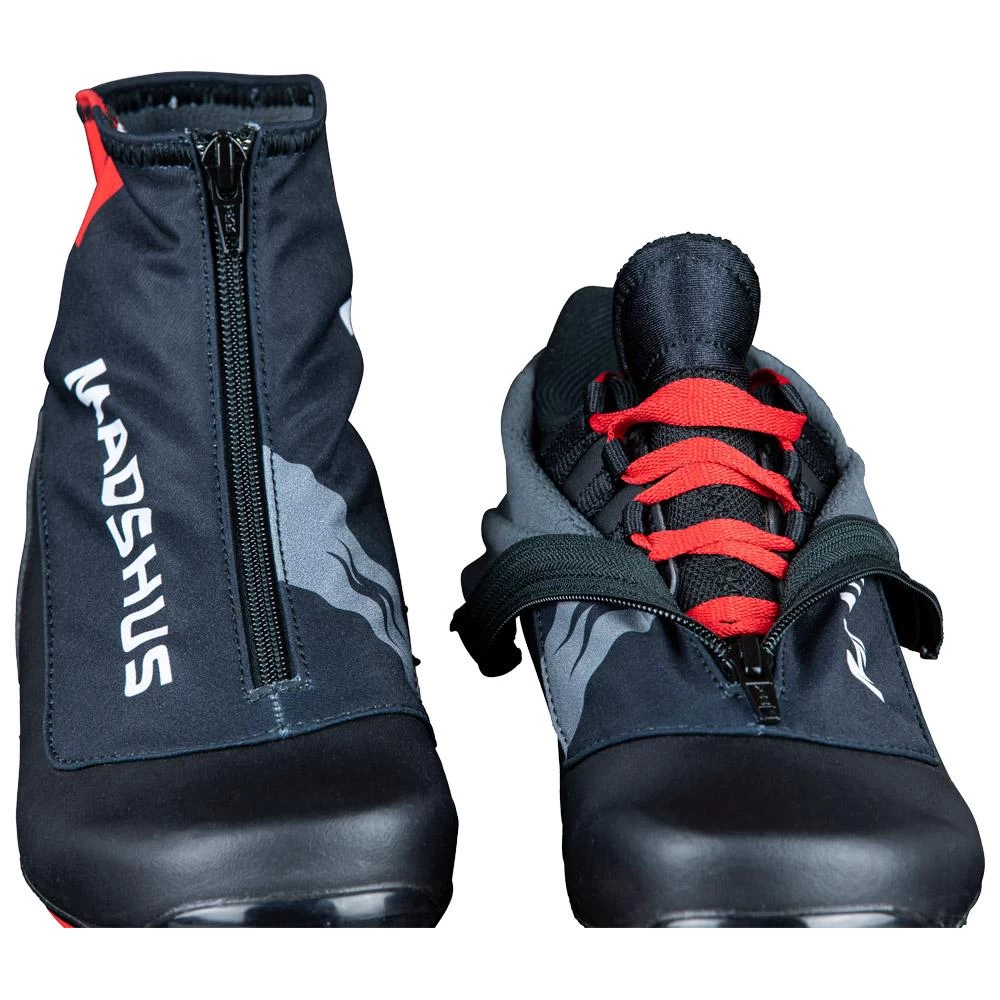 Faites pour passer de longues heures sur neige, cette endurace Classic bénéficie d’un chaussant large et confortable. Son systtème de chausson a pour particularité de s’ahuster sur tous les contours du pied au serrage des lacets ce qui fournit une précision assez étonnante. Pour faire cette chaussure Madshus a tout d’abord pensé à la tolérance, c’est pour cette raison que les contreforts arrière ne sont pas trop présents, cela contraint moins le talon en cas de mauvais placement et évite les douleurs. Le cache-lacets est confectionné en Softshell, ce procéde de fabrication déperlant et coupe-vent garantit une isolation efficace en cas de temps capricieux. La coupe reste sportive, ce qui affirme l’orientation technique de la marque, c’est donc un modèle très progressif.