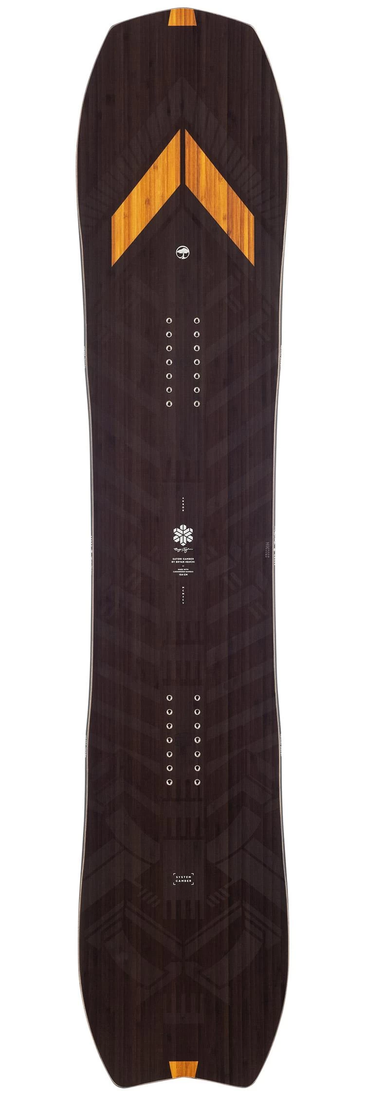 L’Arbor Satori Camber a été imaginée par le snowboardeur Bryan Iguchi. Elle se distingue par sa forme directionnelle, légèrement effilée du nose au tail, ainsi que par ses dimensions assez courtes et larges. Cela lui confère beaucoup de maniabilité et une déjauge naturelle dans la poudreuse. Elle est également pourvue d’un cambre classique bien marqué et de carres ondulées, le tout apportant une très bonne accroche sur neige dure. On voit donc qu’elle est performante sur tout type de neige mais qu’elle reste assez facile à manier, puisque son noyau en paulownia offre un flex bien équilibré entre puissance et confort de ride. Ainsi, c’est une board offrant beaucoup de feeling, accessible dès le niveau intermédiaire/confirmé et qui fera le bonheur d’un snowboardeur qui veut s’offrir de belles descentes sur tous les terrains, qui veut une bonne accroche sur le dur, mais qui ne veut pas non plus trop forcer sur les cuisses.