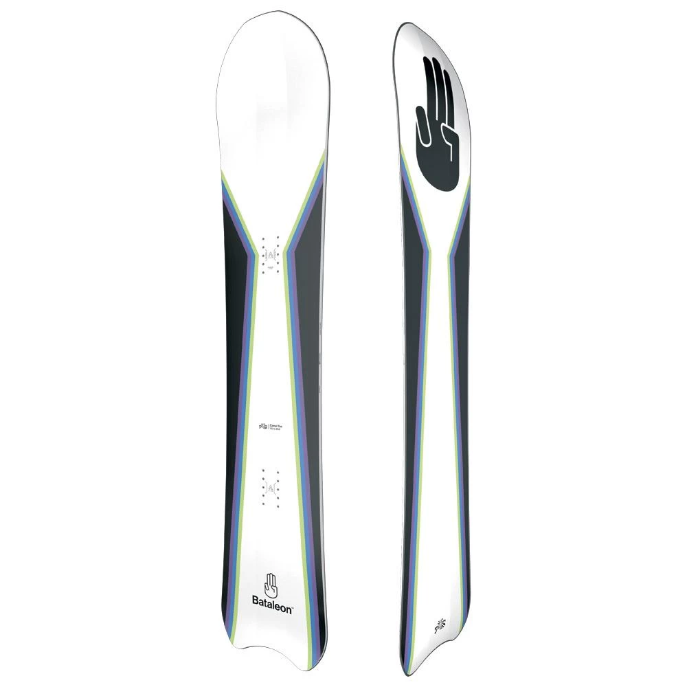 Les amoureux de freeride, intermédiaires comme confirmés, seront servis avec le snowboard Bataleon Camel Toe et son shape directionnel. Avec son nose généreux, son fish tail et une position des pieds reculée, les courbes dans la poudreuse seront une partie de plaisir. Son flex assez souple rend la planche plus facile à piloter tout en gardant du rebond. Même si elle reste confortable à utiliser sur piste avec une bonne accroche en autorisant un léger carving, son profil cambre classique + rockers additionné aux technologies 3BT et Sidekick favorisent la fluidité dans les transferts d’appuis et la portance dans la poudreuse. C’est dans cette neige que le snowboard s’exprimera le mieux. Une belle invitation à franchir les piquets afin d’aller enchaîner les virages dans la fraîche.